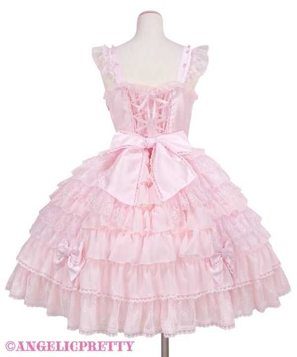 歩くたびに揺れるチュールのリボンが愛らしいジャンパースカート。