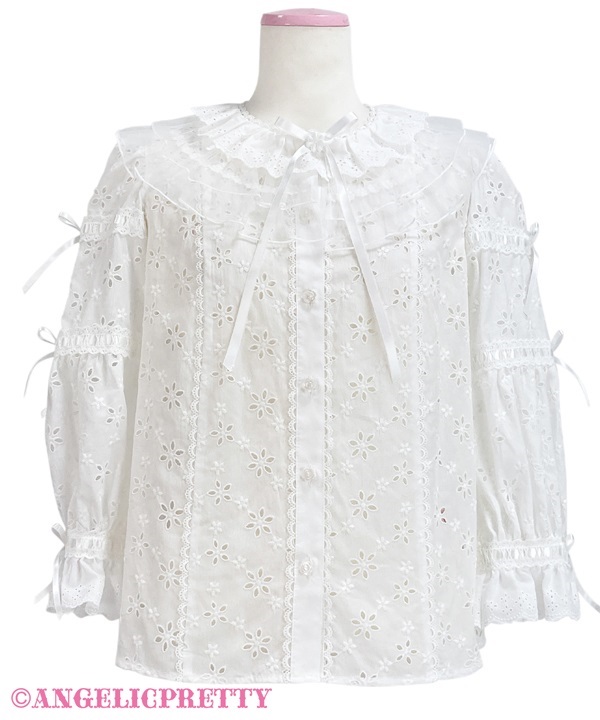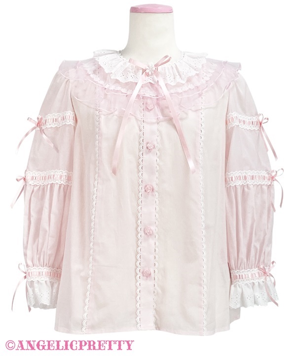 可愛らしいチュールのフリルがあしらわれたブラウス。