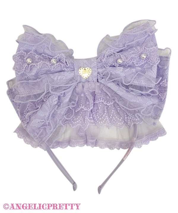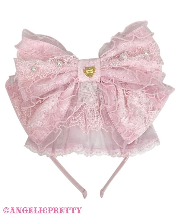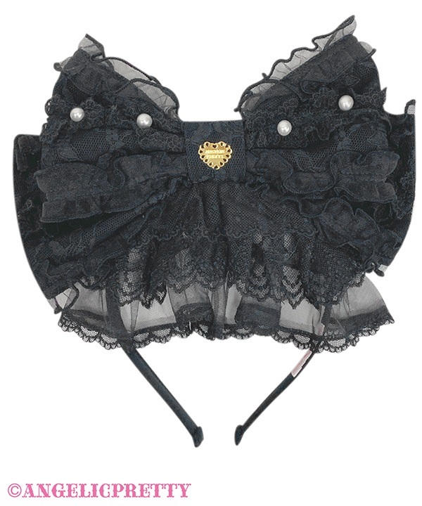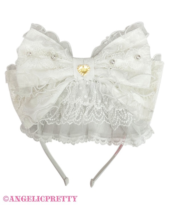 レース生地の大きなリボンカチューシャは華やかなコーディネートにぴったり。